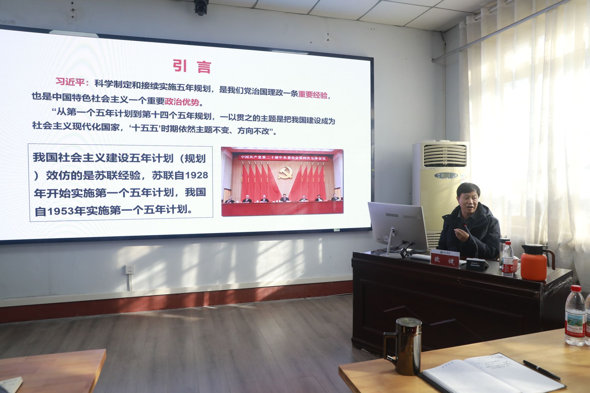 宣讲会上,欧健教授以“深学笃行党的二十届四中全会精神,接续推进中国式现代化”为主题,从习近平总书记关于全会精神的重要论述切入,系统阐释了五年规划作为我们党治国理政的重要经验、中国特色社会主义的重要政治优势的深刻内涵。他结合我国从 “一五” 计划到“十四五”规划的发展历程,清晰梳理了中国式现代化的推进路径,通过详实的数据、生动的案例,有力驳斥了对历史的片面认知,全面展现了新时代以来我国在经济发展、科技创新、民生改善等领域取得的举世瞩目的辉煌成就。