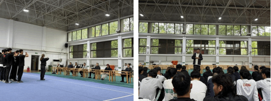 展演结束后,河南大学附属小学石建军老师结合中小学教学课堂一线教学经验,为同学们带来了一场生动的微教学讲座。他就“如何上好一堂体育课”分享实用教学方法与管理策略,帮助学生进一步理解课堂教学的真实情境与组织技巧。
